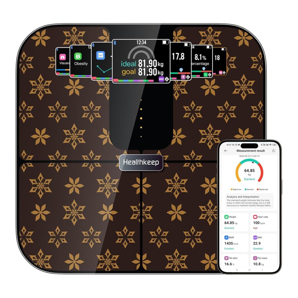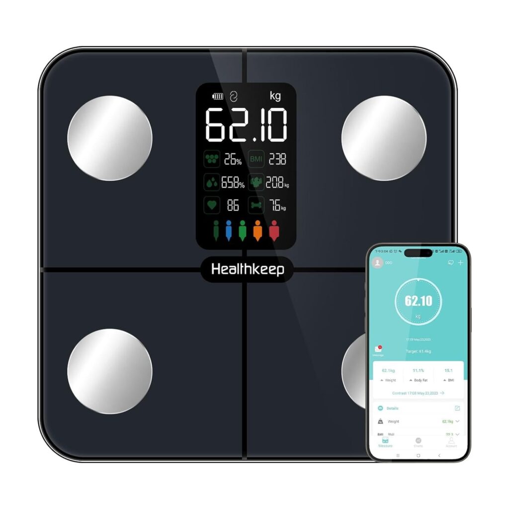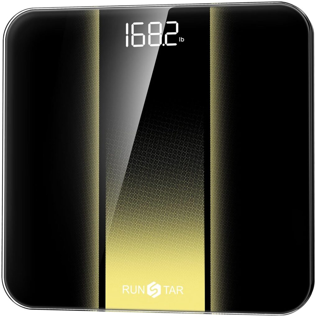 Gran pantalla LCD: En lugar de las básculas con pantalla LCD convencionales, la báscula Runstar cuenta con una gran pantalla que muestra 6 parámetros clave: peso, índice de grasa…