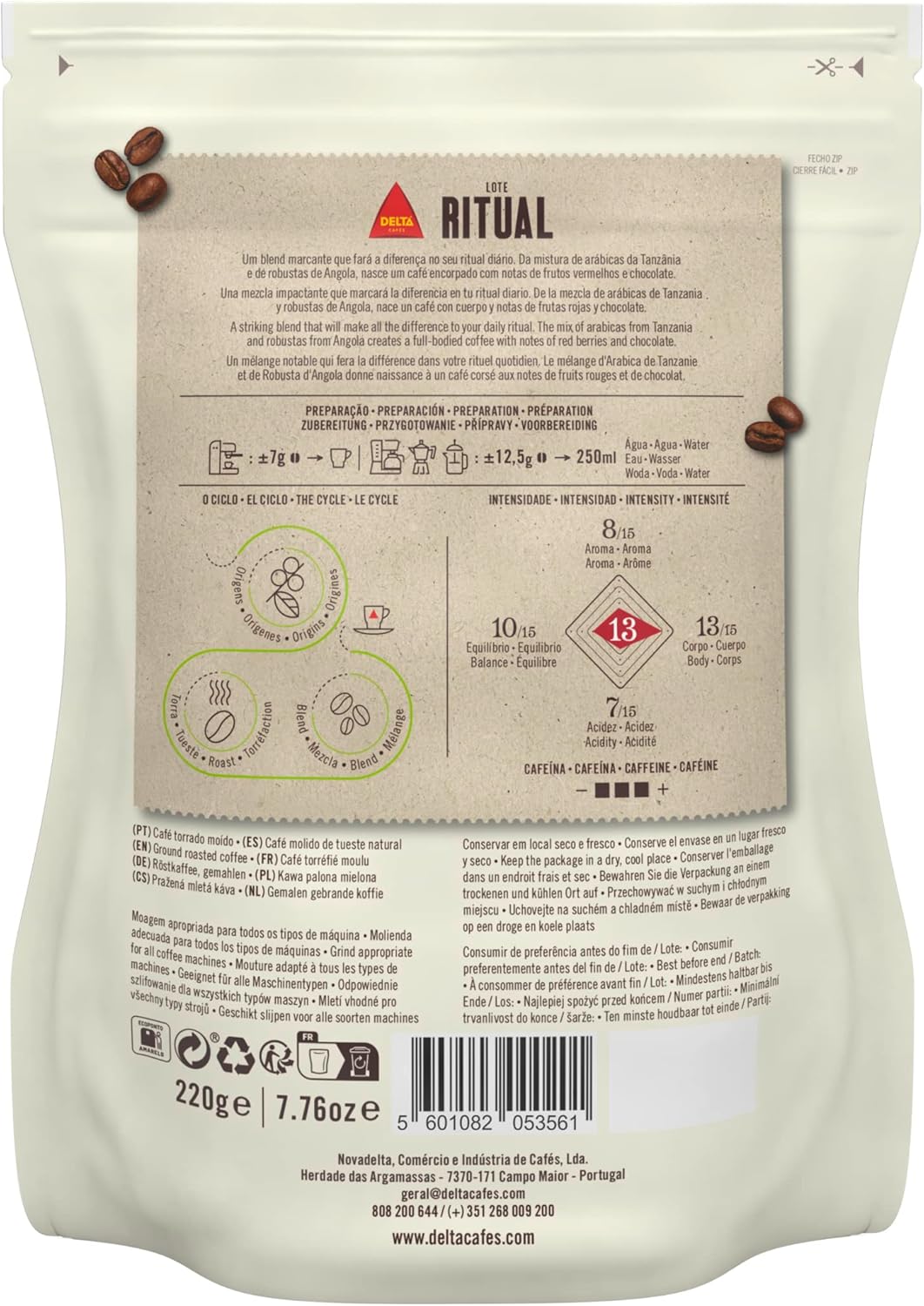 Café molido natural de molienda universal. Apto para todo tipo de cafeteras, tostado en Portugal.