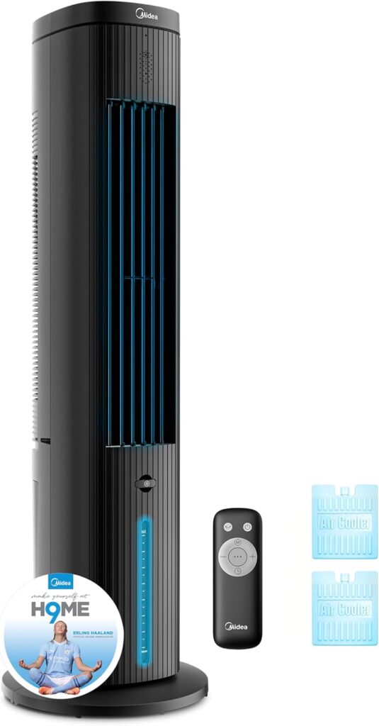 ENFRIAMIENTO RÁPIDO Y MULTIFUNCIONAL 3 EN 1 Disfrute de un enfriamiento instantáneo (ventiladorhumidificadorenfriador). Agregar agua al tanque de 5 litros aumenta la humedad en ambientes