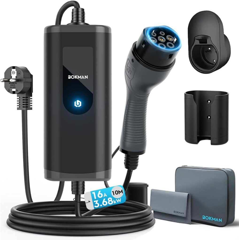 El cargador portátil para vehículos eléctricos ofrece un alcance de hasta 10 metros a cualquier estación de carga pública de tipo 2 o a tu hogar. Con su potencia máxima de 3,68 kW