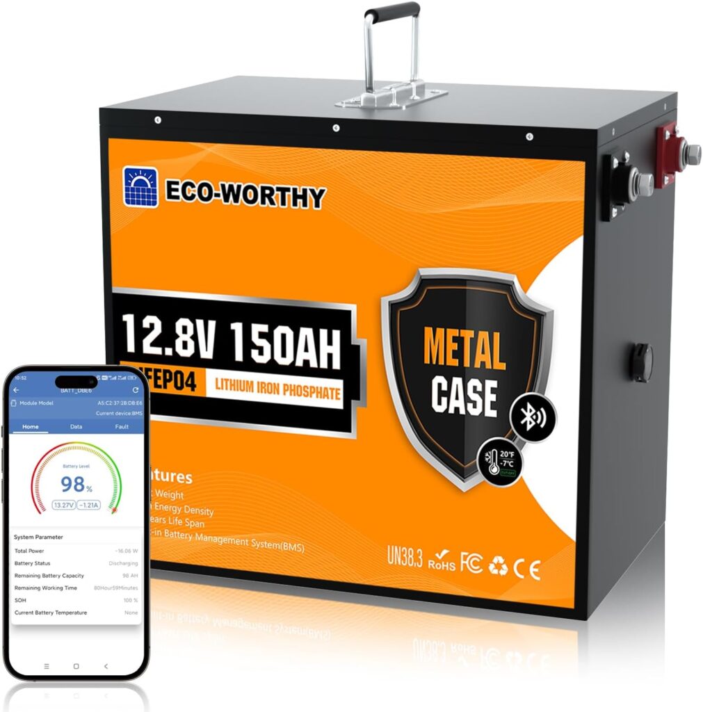 Bluetooth Monitorización del estado de la batería ECO WORTHY 12V 150Ah Bateria LiFePO4 con función Bluetooth con función Bluetooth puede acceder a los distintos datos de la batería (SOC)
