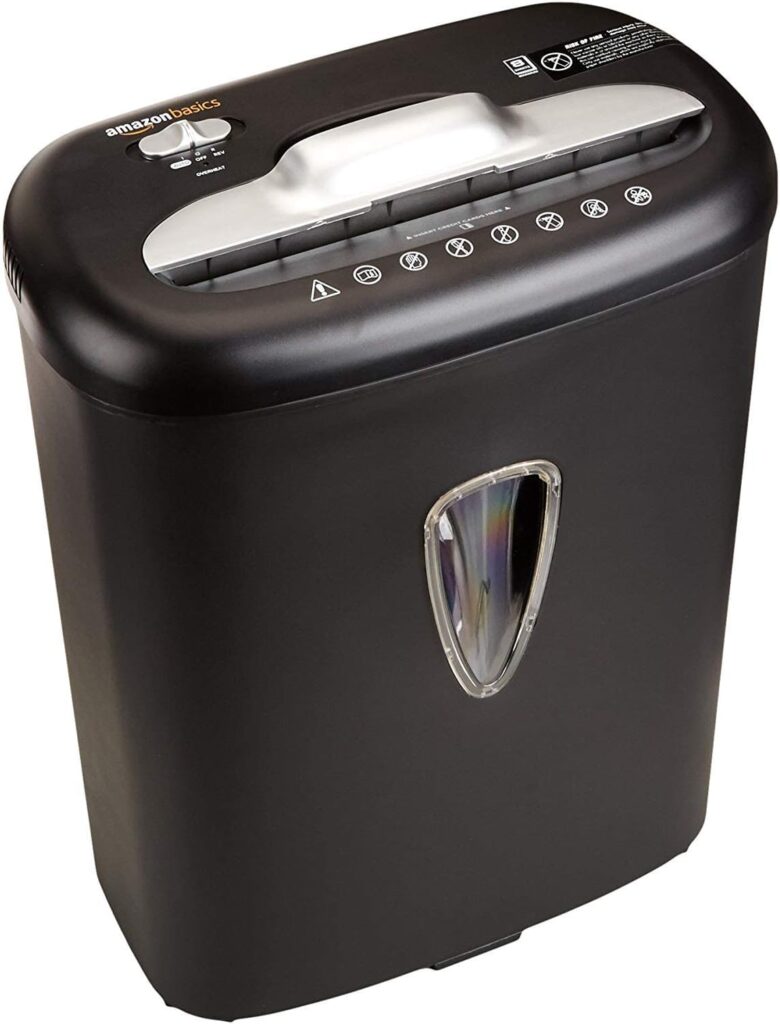 Trituradora de papel de corte cruzado con capacidad para 8 hojas destruye tarjetas de crédito (una por vez). Tritura el papel en tiras de 0, 48 x 4, 68 cm, en cumplimiento con el estándar