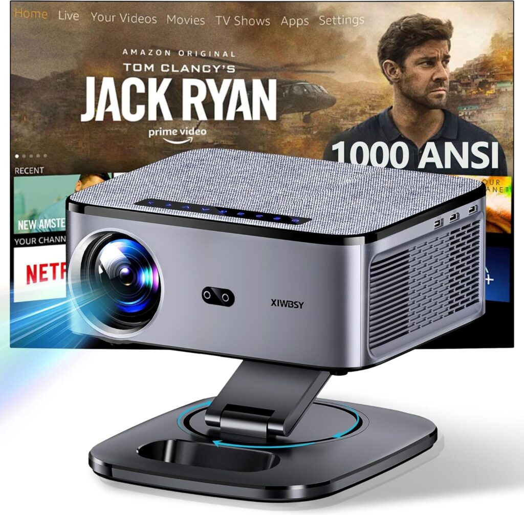 360 Soporte único extraíble y plegableEl soporte giratorio de 360 ofrece más versatilidad que el estándar de 180. XIWBSY proyector wifi cuenta con un soporte único extraíble y plegable para…